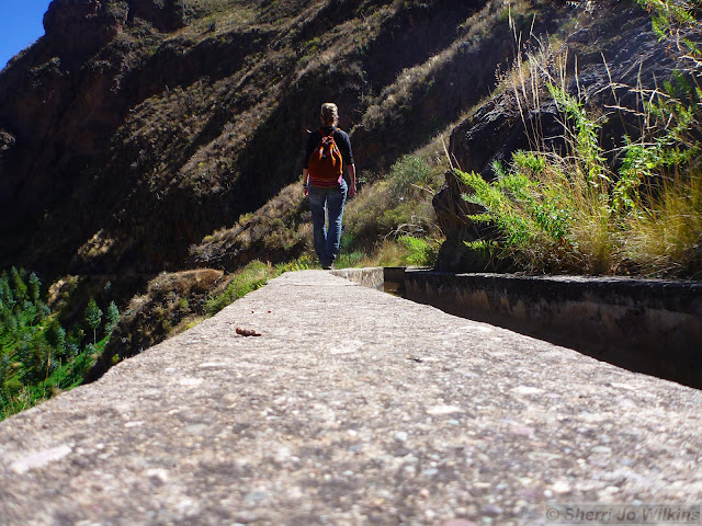 While I was walking along the viaduct, I met this young guy, Michaelangelo. We walked together and chatted, one on each side of the water. It is important to pay attention as a lot of the viaduct is along a long drop to the valley below. Somehow we got on to the subject of Pachamama, spirituality etc. ('Tis the town to be spiritual! ;-)